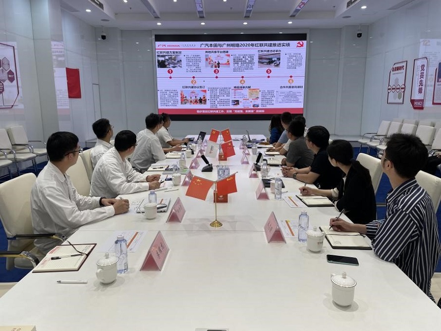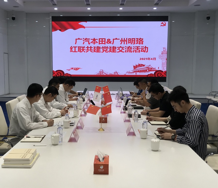 為落實(shí)市委組織部關(guān)于紅聯(lián)共建工作的部署要求,2020年8月,廣州明珞裝備黨支部與廣汽本田黨委簽署了紅聯(lián)共建協(xié)議,建立了紅聯(lián)共建示范基地平臺(tái),通過整合黨建資源,開啟了兩個(gè)企業(yè)之間的互聯(lián)互動(dòng)、融合發(fā)展。為持續(xù)推動(dòng)并鞏固雙方的共建成效,開發(fā)更多領(lǐng)域的合作共贏,切實(shí)形成資源共享、優(yōu)勢(shì)互補(bǔ)、銜接互動(dòng)、共同發(fā)展的紅聯(lián)共建格局。2021年4月1日,廣州明珞與廣汽本田開展了紅聯(lián)共建交流活動(dòng)。廣州明珞董事長(zhǎng)姚維兵、廣州明珞黨支部書記左志軍、廣汽本田團(tuán)委書記韓汶峰、采購(gòu)聯(lián)合黨支部書記姚軍以及云埔街科技企業(yè)加速器園區(qū)黨委黨建指導(dǎo)員等代表共21人參加本次活動(dòng)。會(huì)議上,首先共同回顧了2020年紅聯(lián)共建成效,雙方通過陣地共享平臺(tái)搭建、難題清單共解、技術(shù)交流活動(dòng)等讓紅聯(lián)共建扎實(shí)落地,生根發(fā)芽。