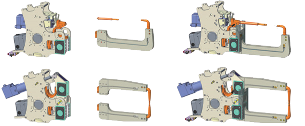 FlexGun- 3新一代輕量模塊化焊槍,鋼鋁點(diǎn)焊通用的焊槍,該系列焊槍C型和X型焊槍具有完全通用的槍體,標(biāo)準(zhǔn)的零部件,最大限度減少備件,易于使用和維護(hù)。鋼點(diǎn)焊和鋁點(diǎn)焊可以通用 換,其模塊化結(jié)構(gòu)易于安裝及維護(hù)。 頂端模塊 動(dòng)力驅(qū)動(dòng)模塊 該系列焊槍