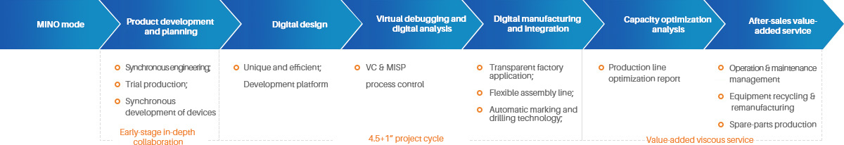 Digitalization and automation go hand in hand. On the basis of equipment automation, highly-efficient control and management are realized through digitalization. At present, digitalized software and automatic equipment are widely used, such as: MINO rapid device design platform, software for automatic generation of program, etc.