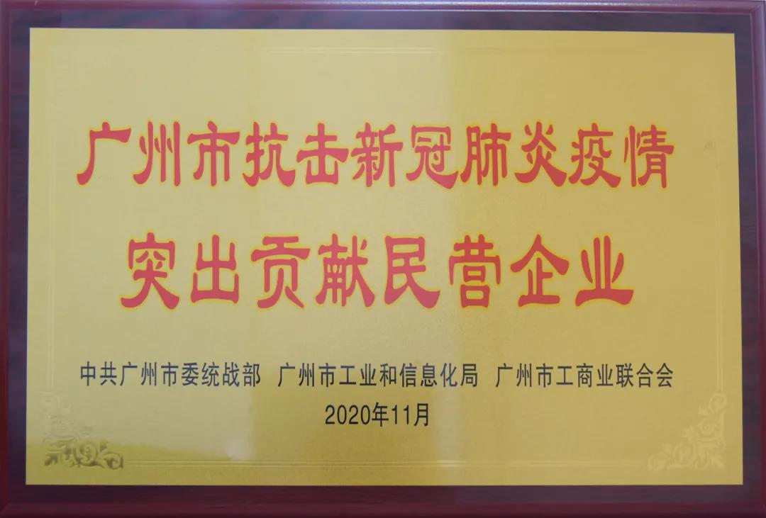 廣州市抗擊新冠肺炎疫情突出貢獻民營企業(yè)榮譽牌匾