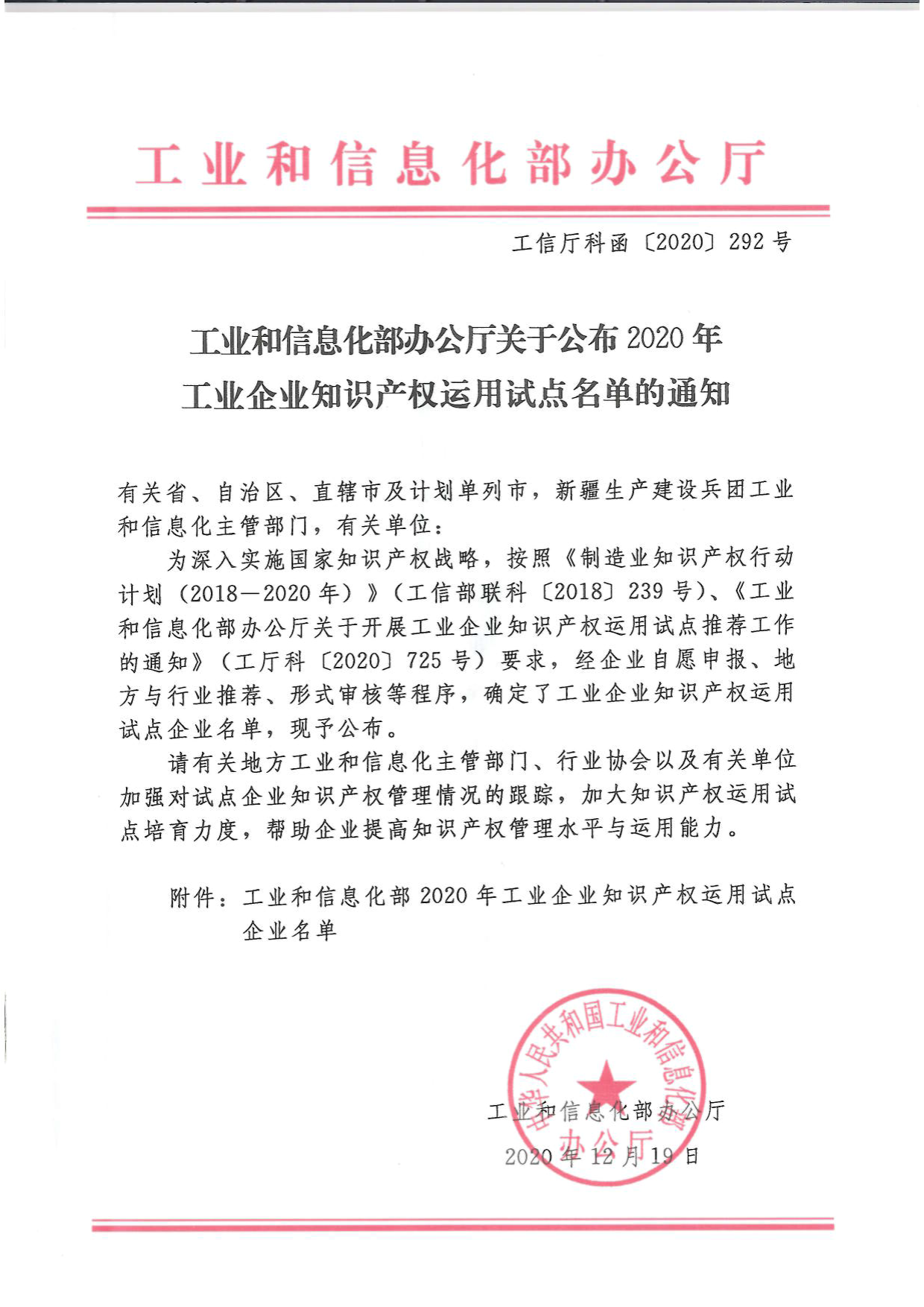明珞入選國家工信部2020年工業(yè)企業(yè)知識產(chǎn)權(quán)運用試點名單